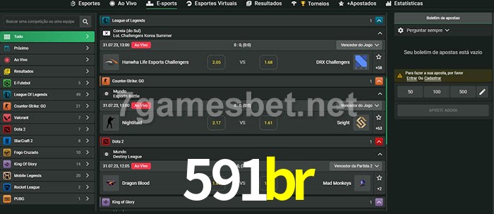 A aposta 591br oferece aos jogadores a experiência mais conveniente de apostas em eSports!